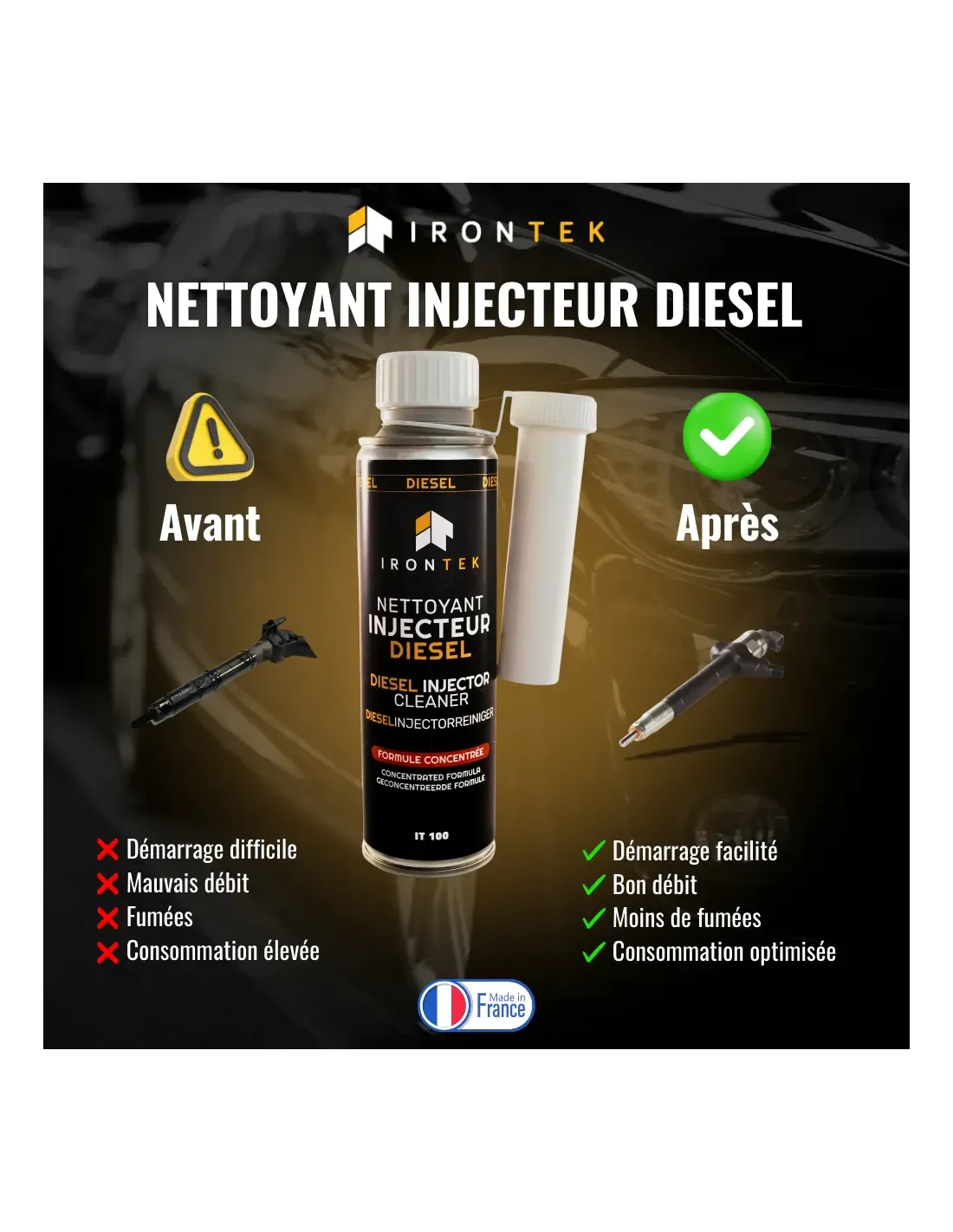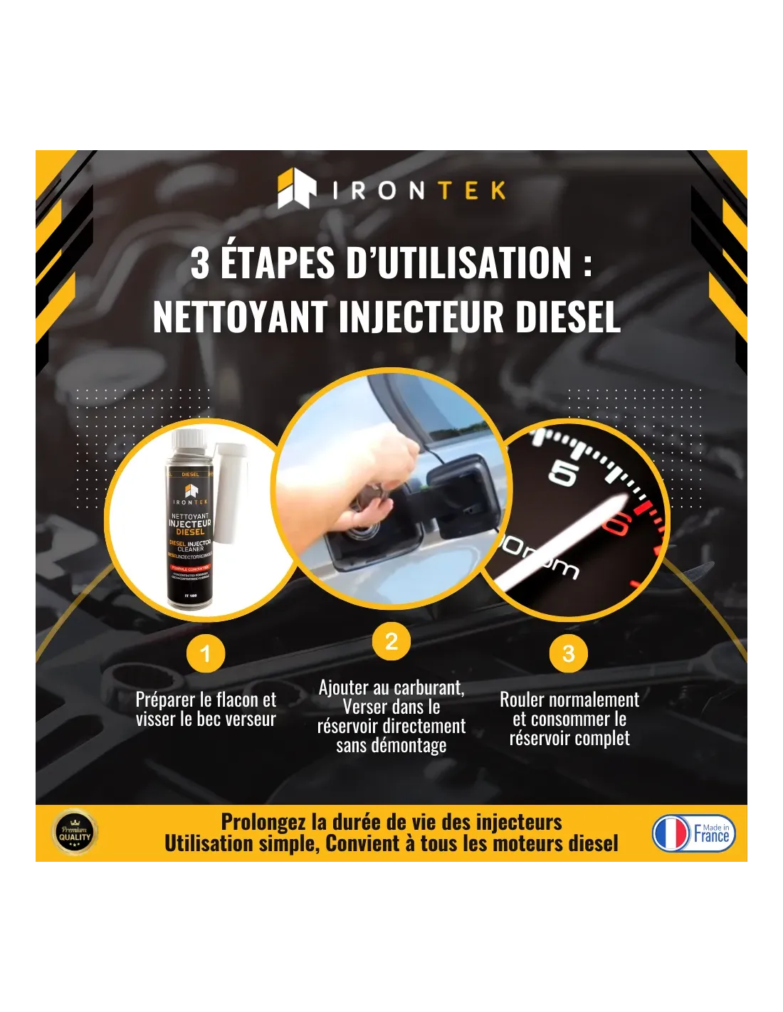 Ce produit s’adresse aux automobilistes soucieux d’entretenir leur système d’injection et d’éviter les voyants orange moteur liés à un encrassement progressif du circuit carburant.