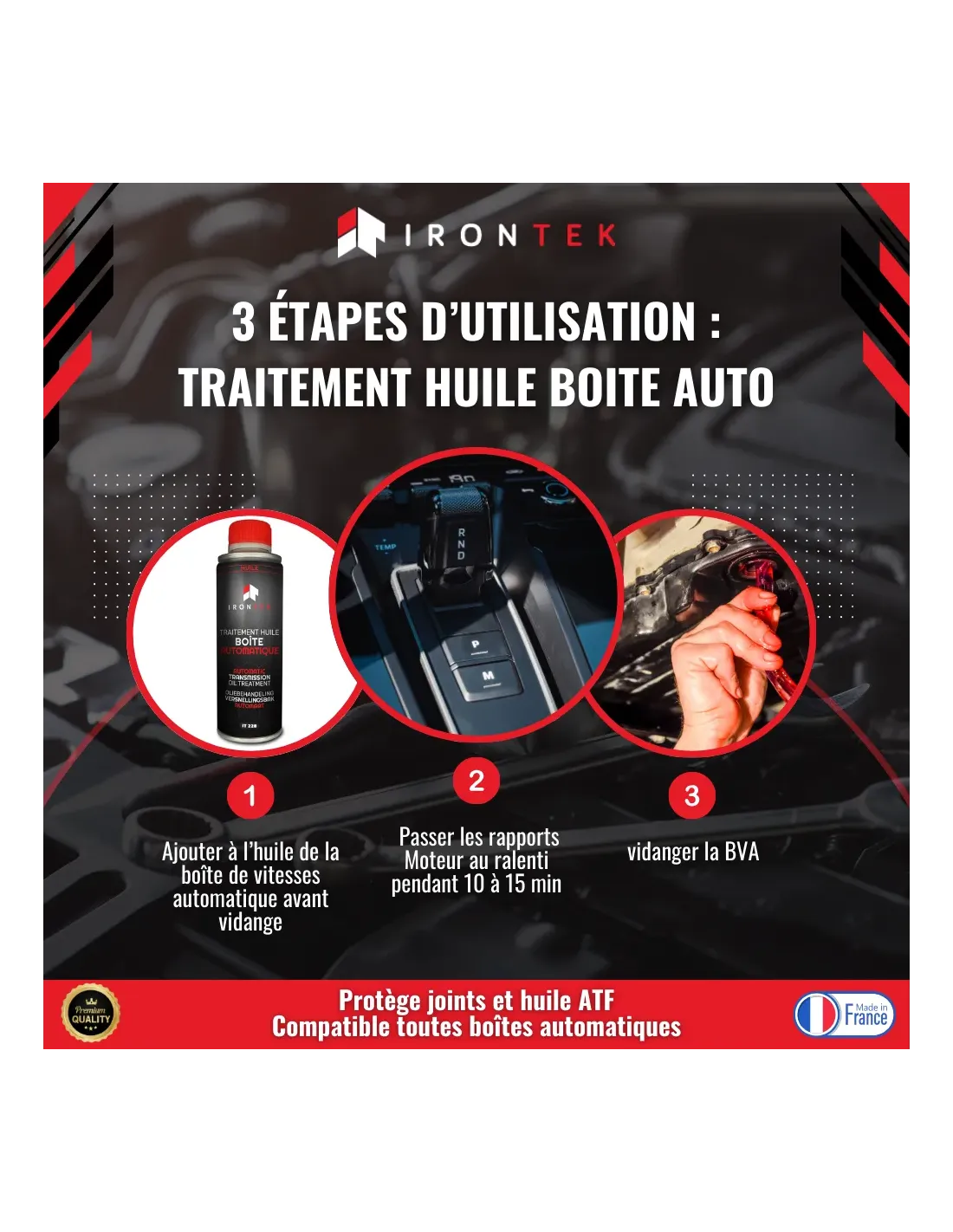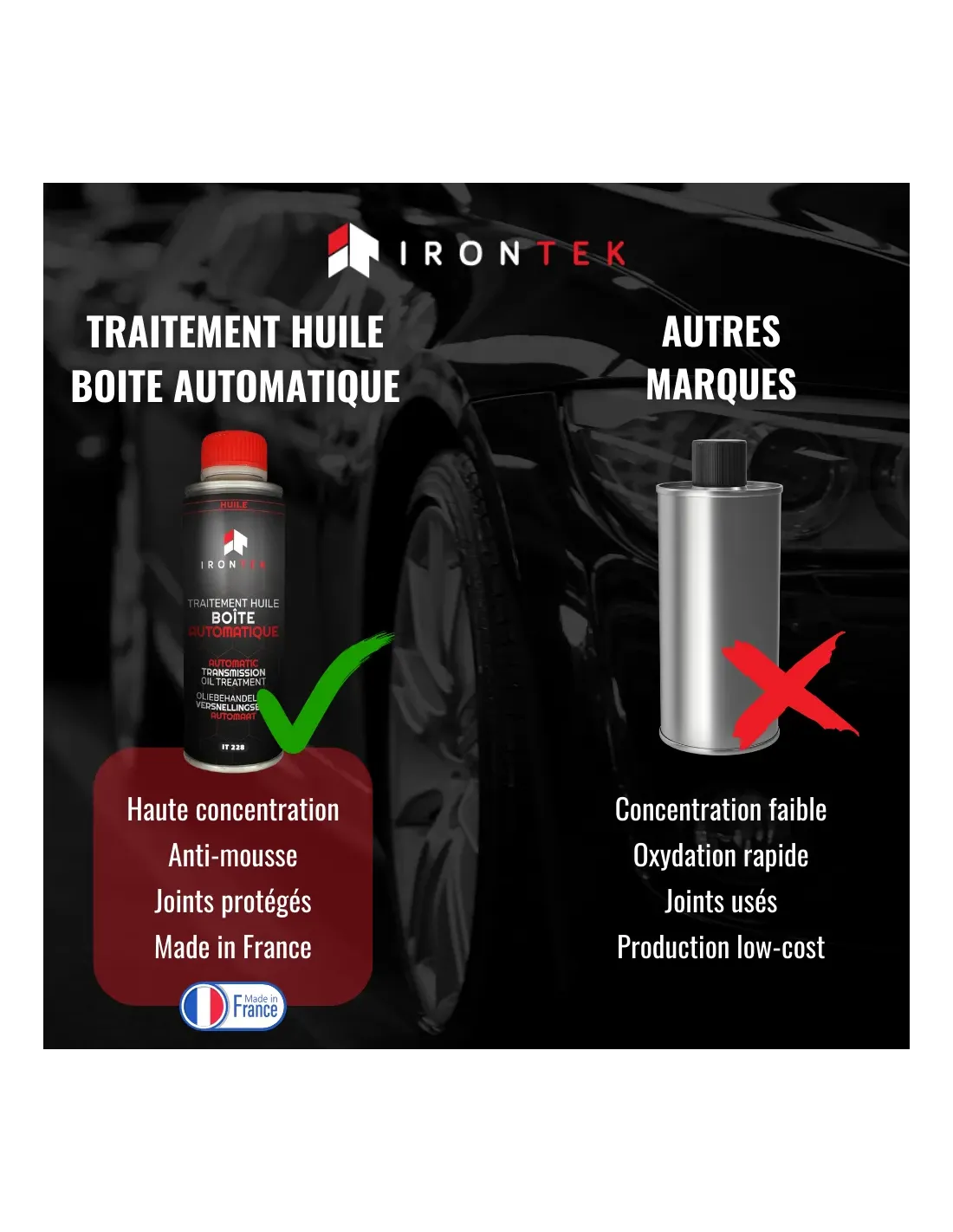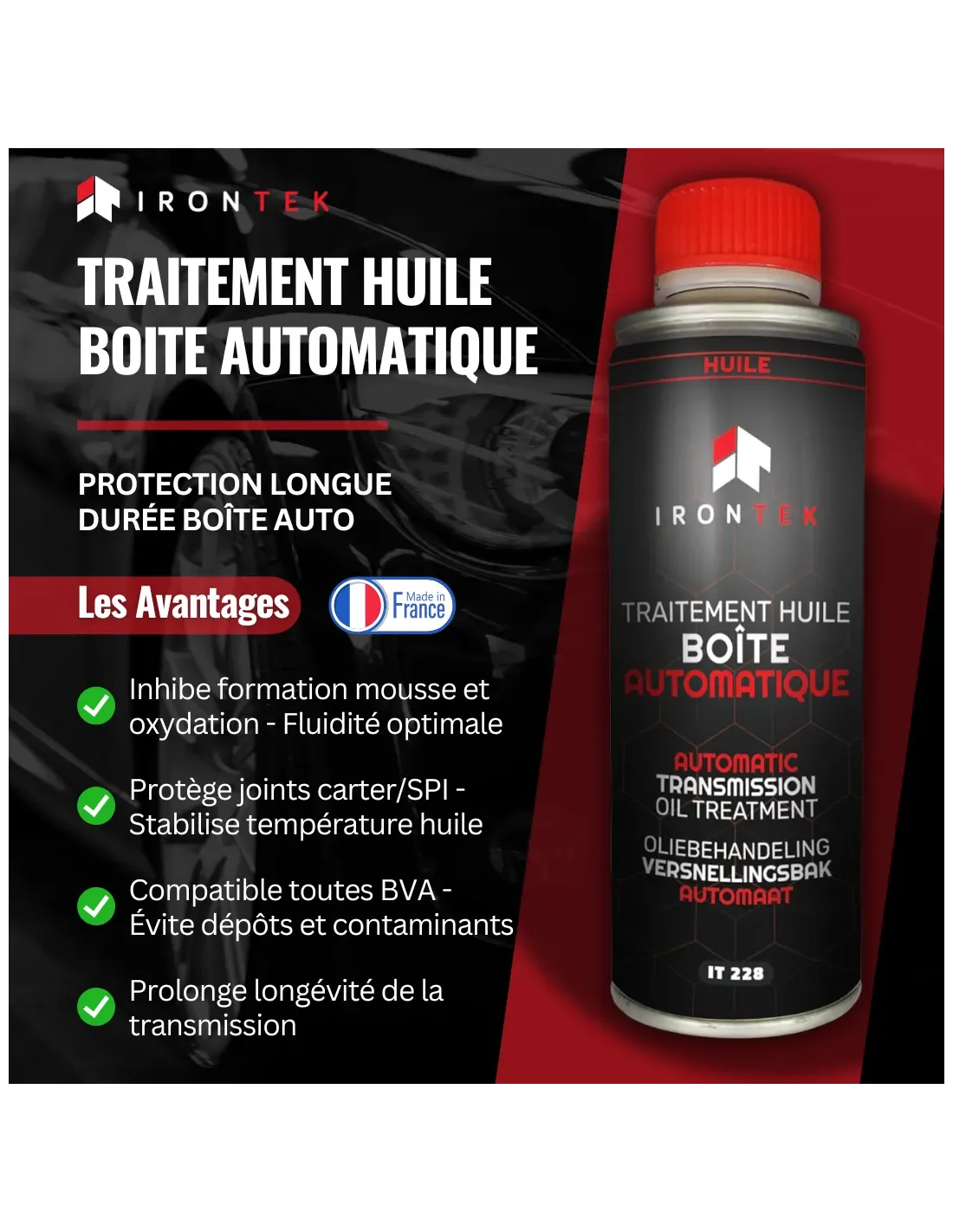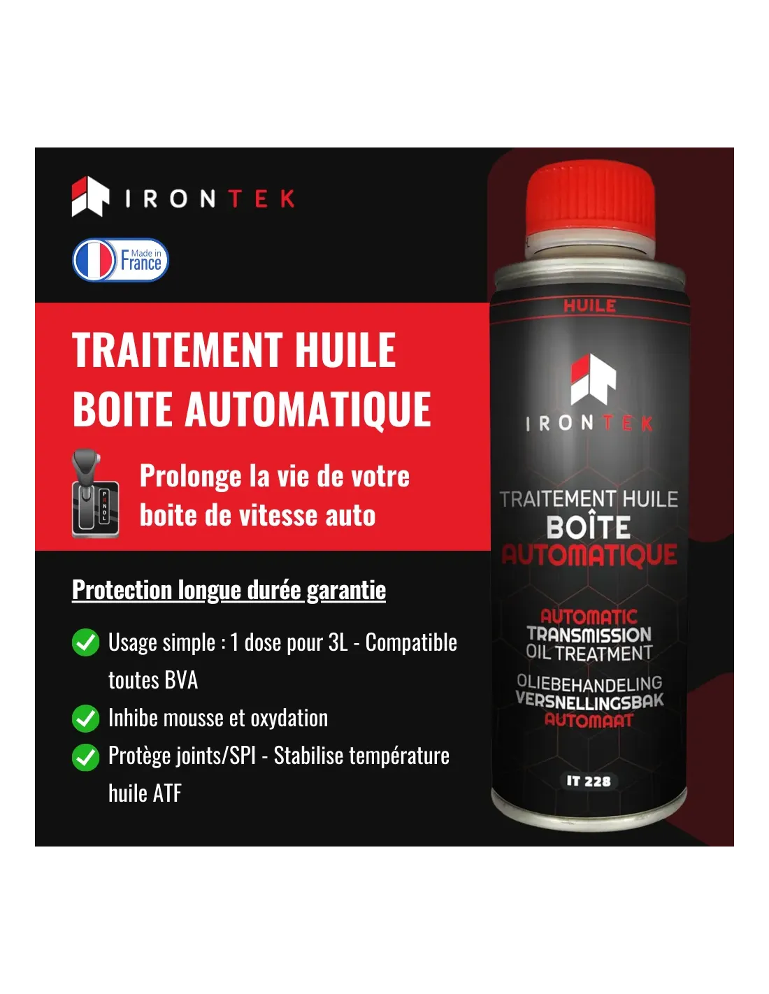 Le Traitement Huile Boîte Automatique IRONTEK est un additif protecteur haute performance pour toutes boîtes de vitesses automatiques.