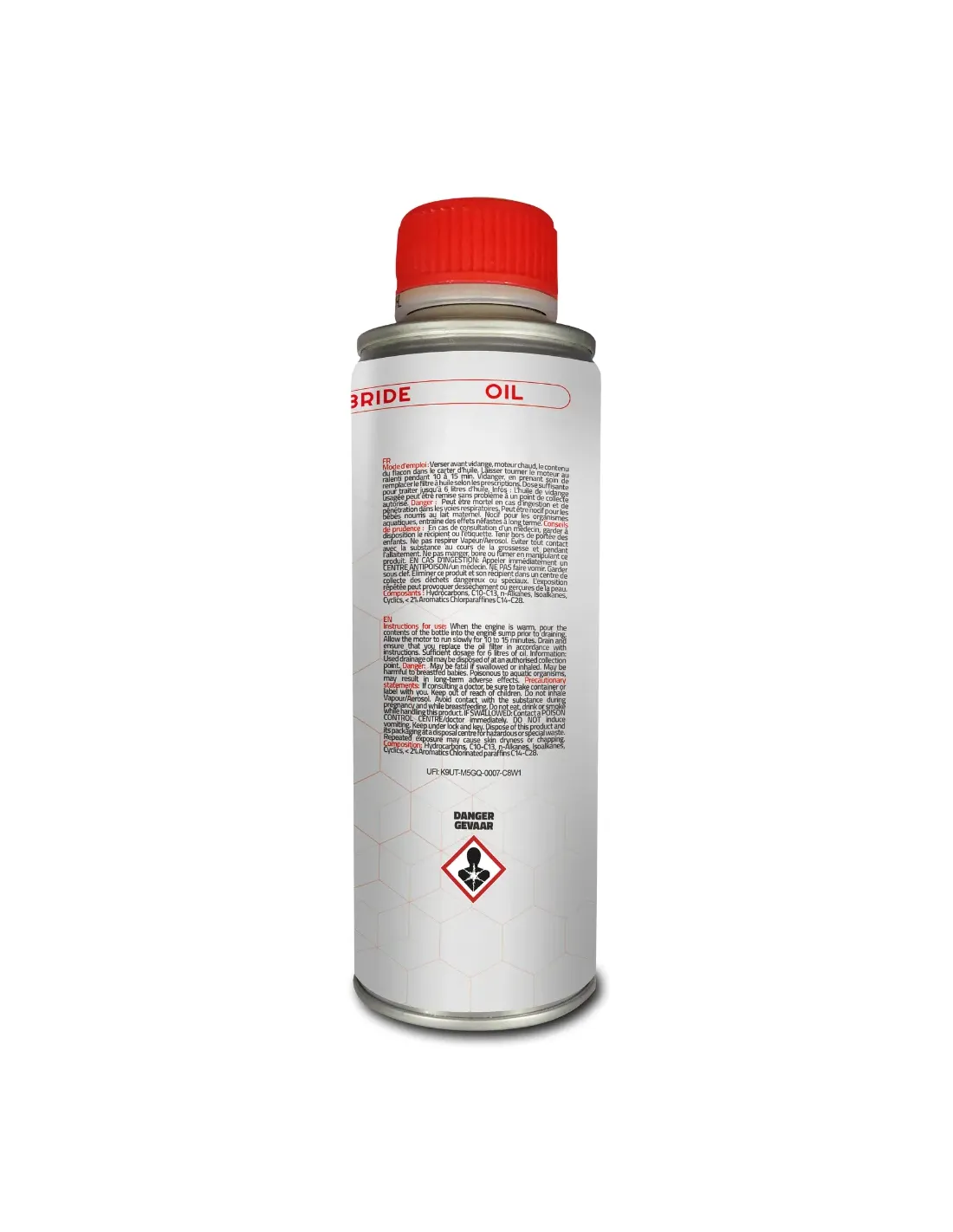 Verser avant vidange, moteur chaud, le contenu du flacon dans le carter d’huile. Laisser le moteur à l’arrêt tourner au point mort pendant 10 à 15 min. Vidanger, en prenant soin de remplacer le filtre à huile selon les prescriptions. 300mL est suffisant pour traiter jusqu’à 5 litres d’huile. Le rapport de mélange indiqué de 1:15.