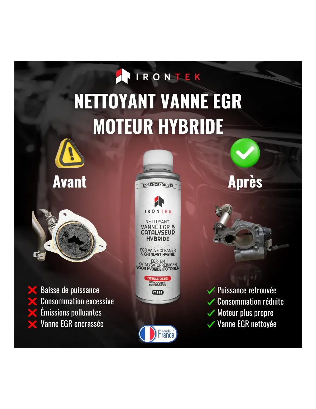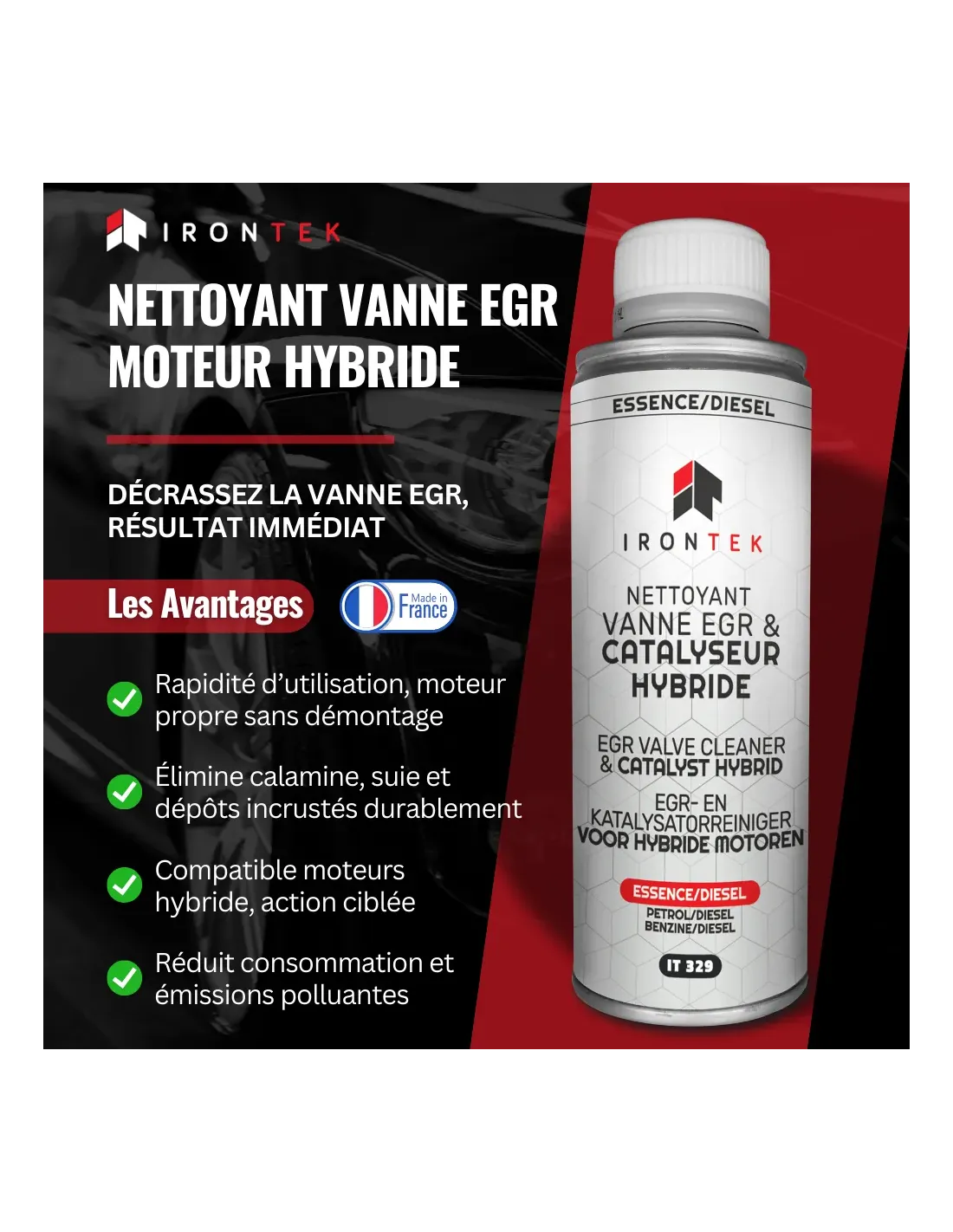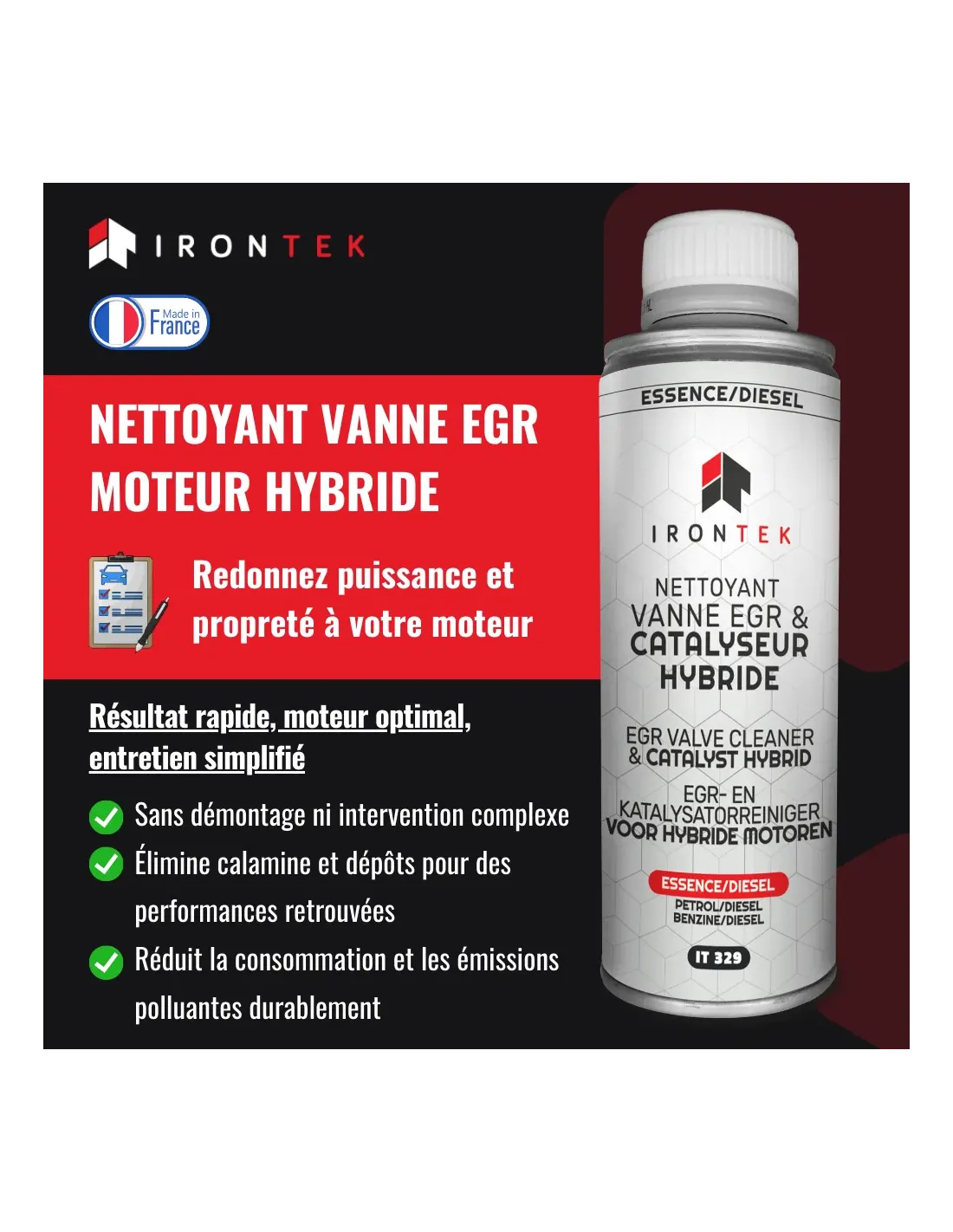 Nettoyant Vanne EGR & Catalyseur Hybride Essence/Diesel IRONTEK