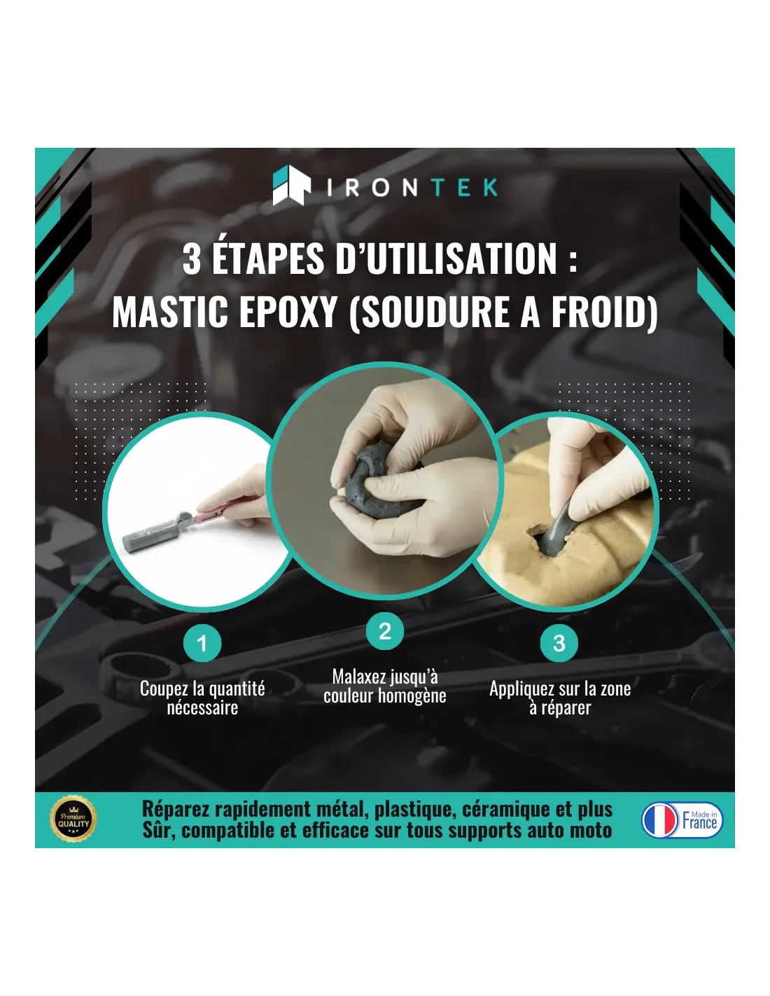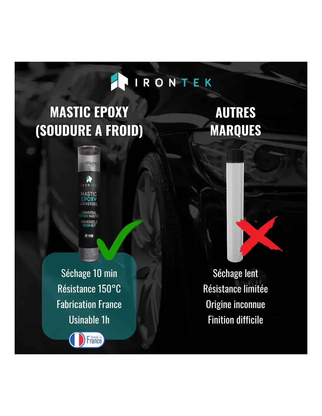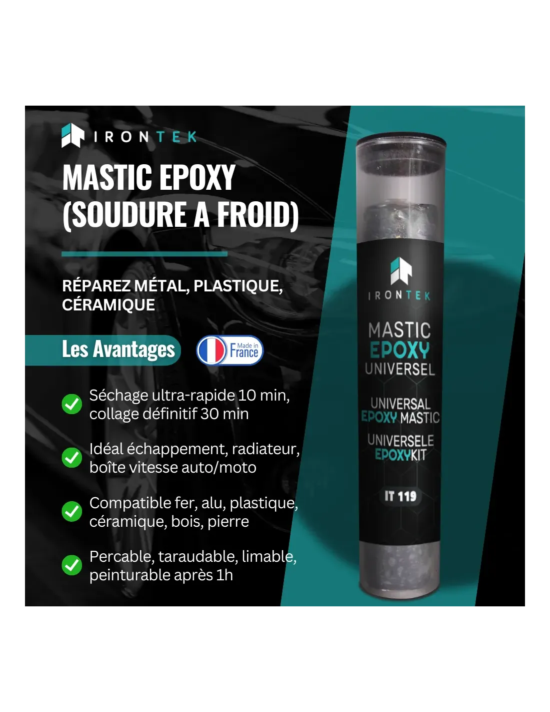 • Parfait comme pâte de réparation auto, marine, ou bricolage