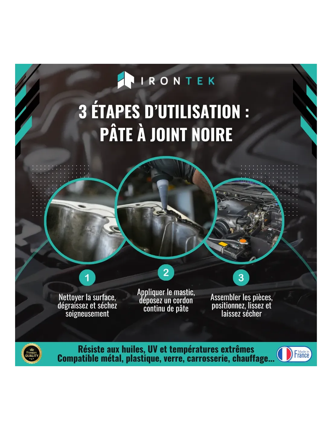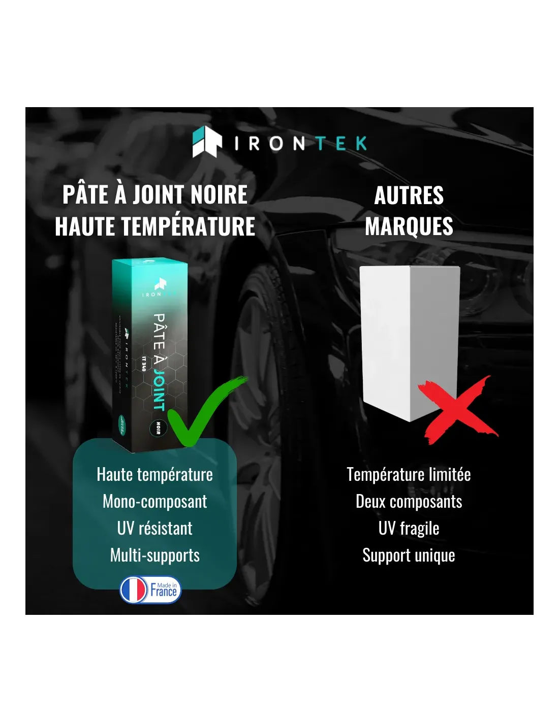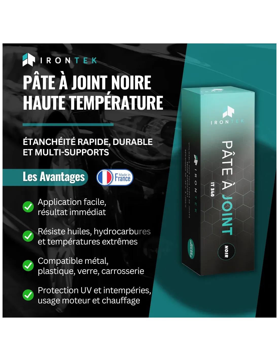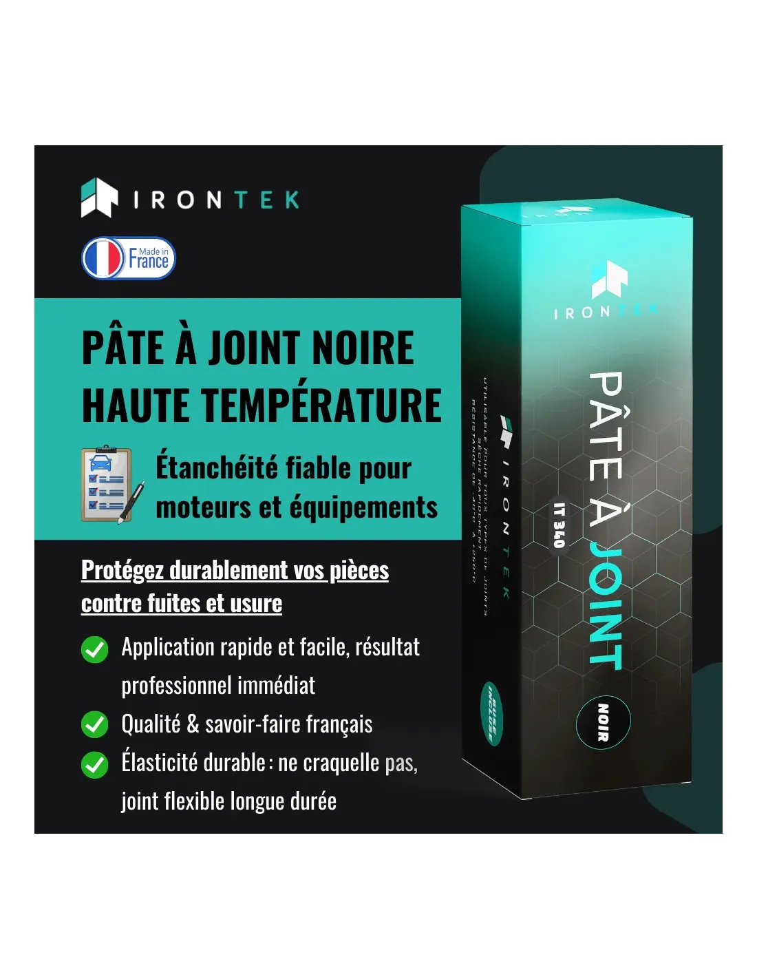 La Pâte à Joint Haute Température IRONTEK IT340 est un mastic élastomère mono-composant conçu pour réaliser des joints souples, durables et résistants jusqu’à +250°C.