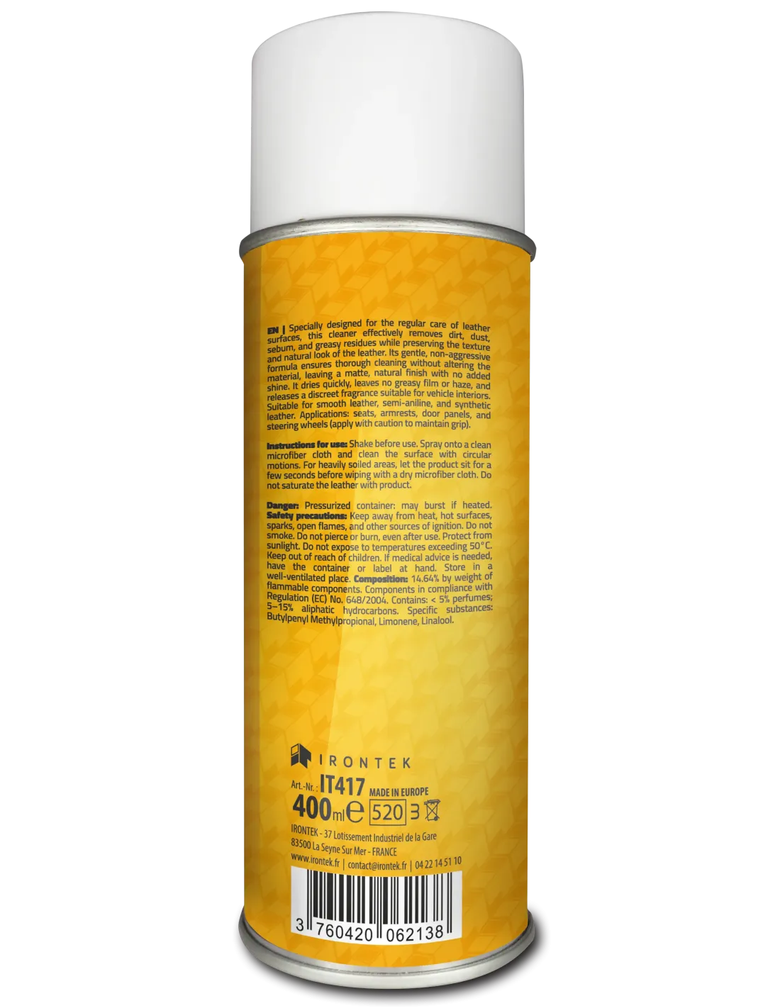 Spécialement conçu pour l’entretien régulier des surfaces en cuir, ce nettoyant élimine efficacement saletés, poussières, sébum et résidus gras tout en respectant la texture et l’aspect naturel du cuir. Sa formule douce et non agressive garantit un nettoyage sans effet rénovateur, laissant une finition mate et naturelle, sans brillance ajoutée. Il sèche rapidement, ne laisse ni film gras ni voile, et diffuse un parfum discret adapté à l’habitacle. Convient au cuir lisse, semi-aniline et simili cuir. Domaines d’application : sièges, accoudoirs, panneaux de porte et volants (appliquer avec prudence pour préserver l’adhérence).